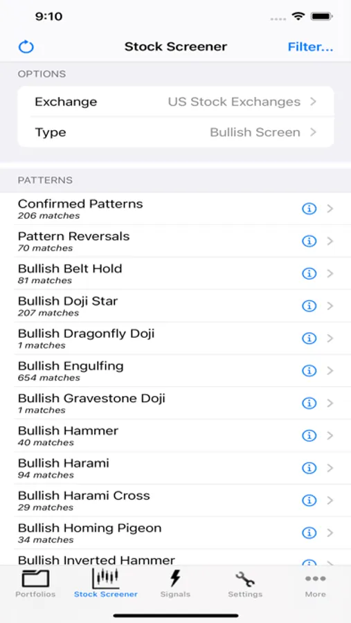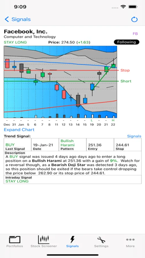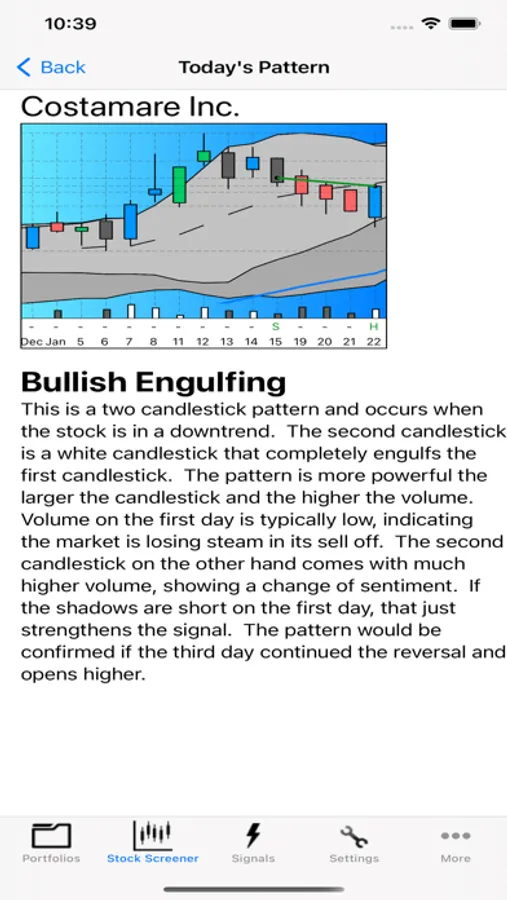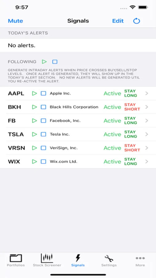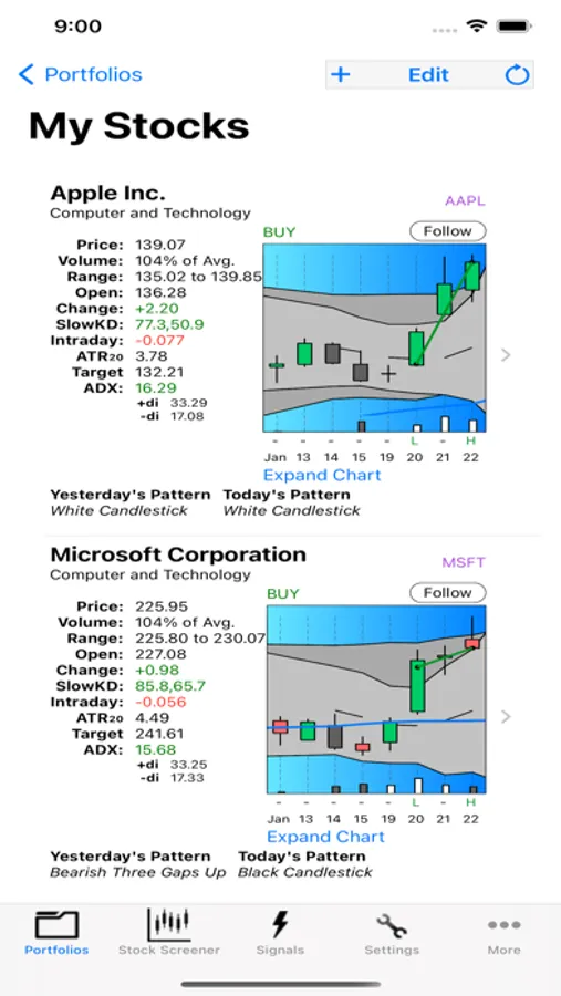 Setup a watch list of your favorite trading stocks. Monitor these stocks as this App automatically detects new patterns and signals. See patterns as they develop throughout the day real-time, used either as confirmation of a previous day's pattern or as a key to spotting a new patterns develop.