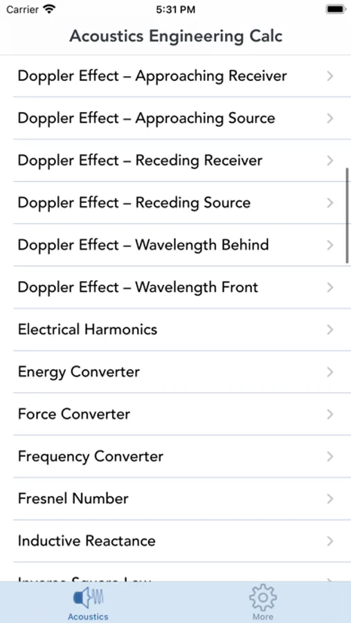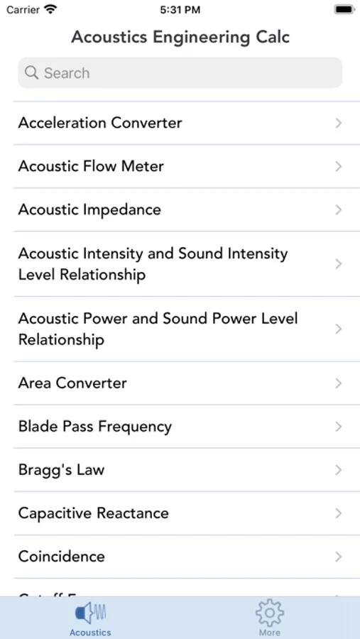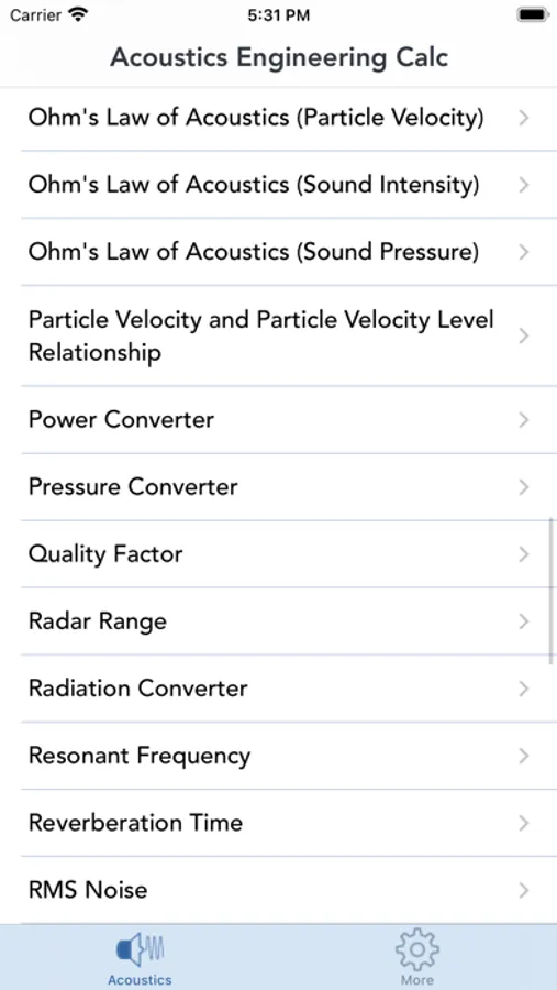 A pack of 77 calculators and converters related to Acoustics Engineering with Formulas and Definitions.