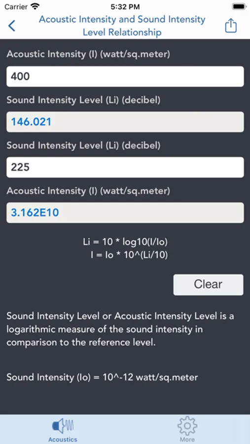 4. Acoustic Intensity and Sound Intensity Level Relationship
