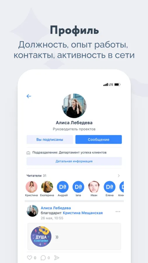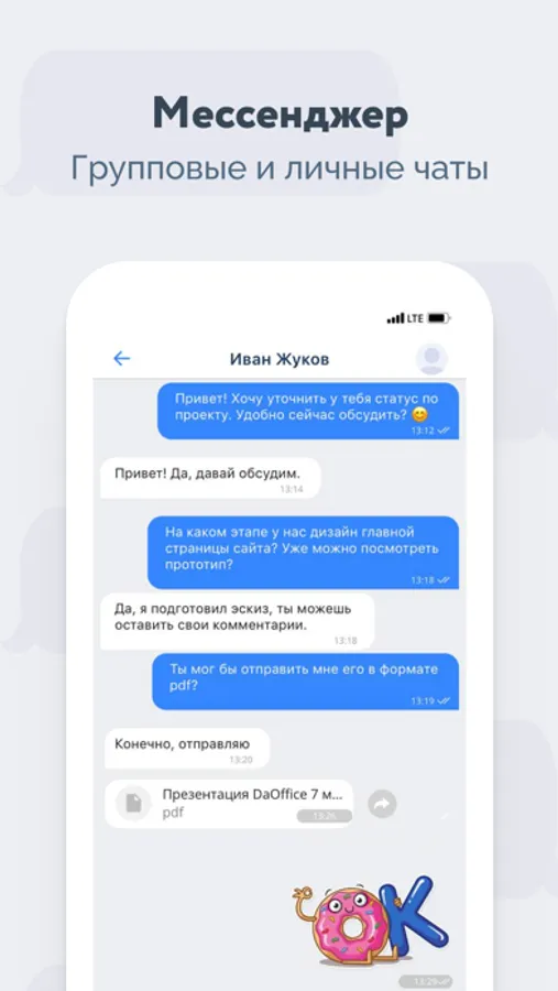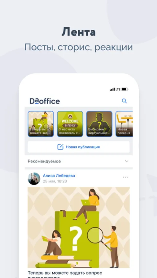 DaOffice - is a social network for collaboration within the company. With it employees can quickly locate the contacts of your colleagues, get answers to questions, share expert information, share documents, coordinate the work of project teams to generate and discuss ideas.