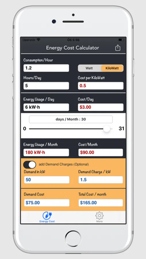 Energy Cost Calculator: calculates the Operating cost & Energy Usage of Electric Equipments or Machinery.