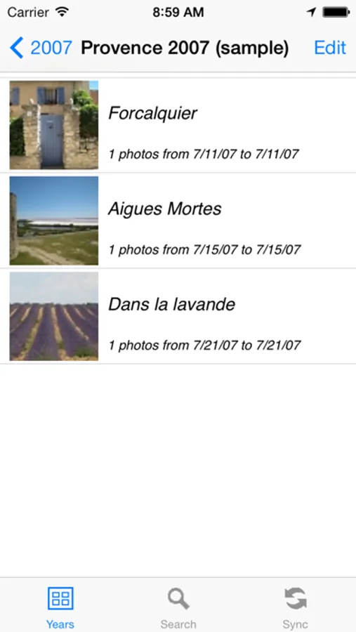 You will be able to search for photos by date, description, title and/or keywords ( managed using iPhoto or desktop editions ). The number of photos is limited only by the amount of memory on your device.