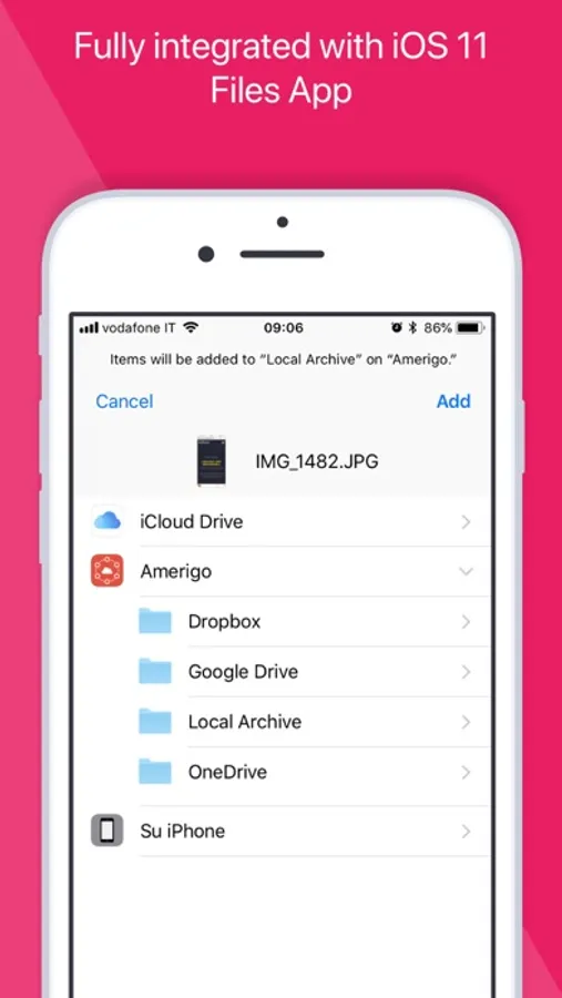 For example if you receive an email, you can directly save the email attachments to one of the cloud linked in Amerigo, simply choosing "Save in files" in the action sheet.