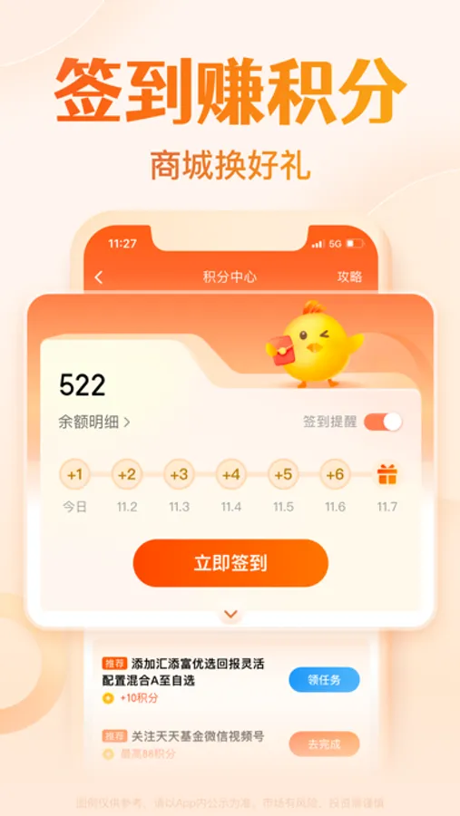 3. 快速赎回:基金赎回时,T+1日到账活期宝;