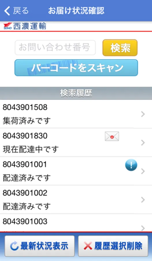 お届物の「お問い合わせ番号」を入力して検索できます。