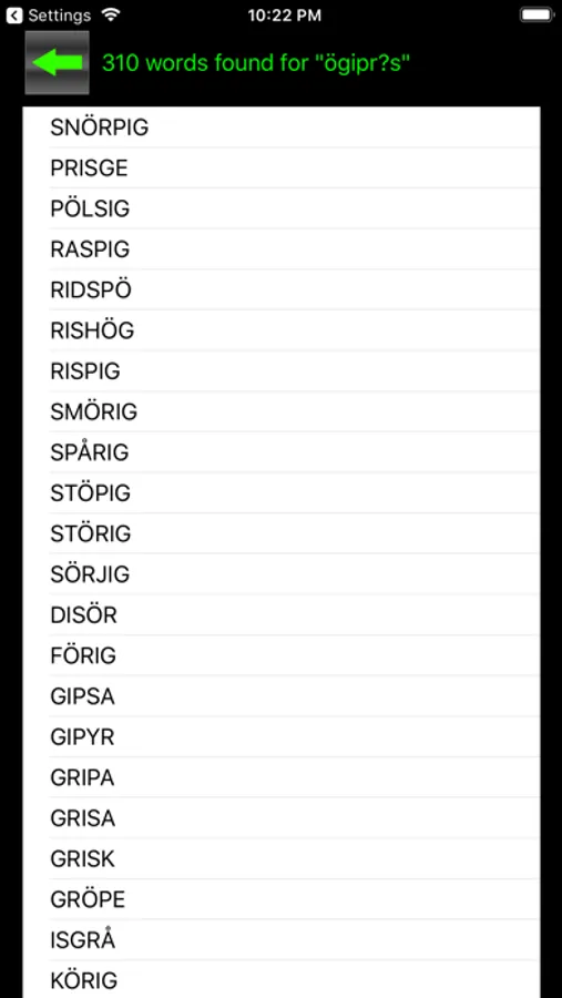 -More than 110.000 valid words in the Swedish (strict - no endings or conjugations) word list