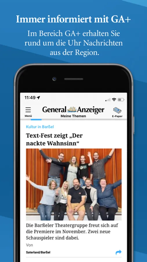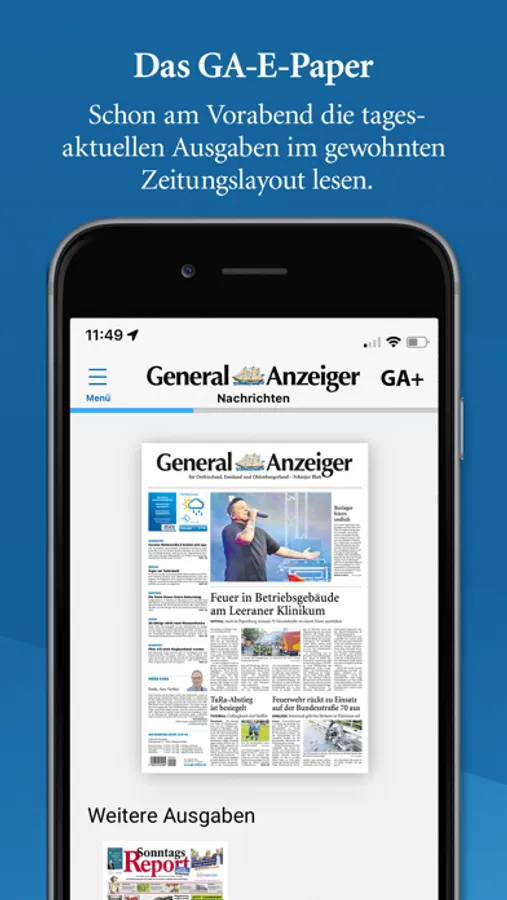 Doppelt gut: Die GA-App vereint Online-Nachrichten und E-Paper in einer App. Sie greifen auf alle Artikel, Berichte, Bildergalerien und Videos des General-Anzeigers zu. Beim Nutzen der App können Sie bequem zwischen der Ansicht des E-Papers und GA+ wechseln.