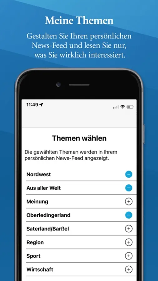 Im Newsfeed legen Sie Ihre persönlichen Themen fest. So verpassen Sie nichts und lesen abgestimmt auf Ihre Interessen.
