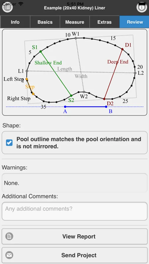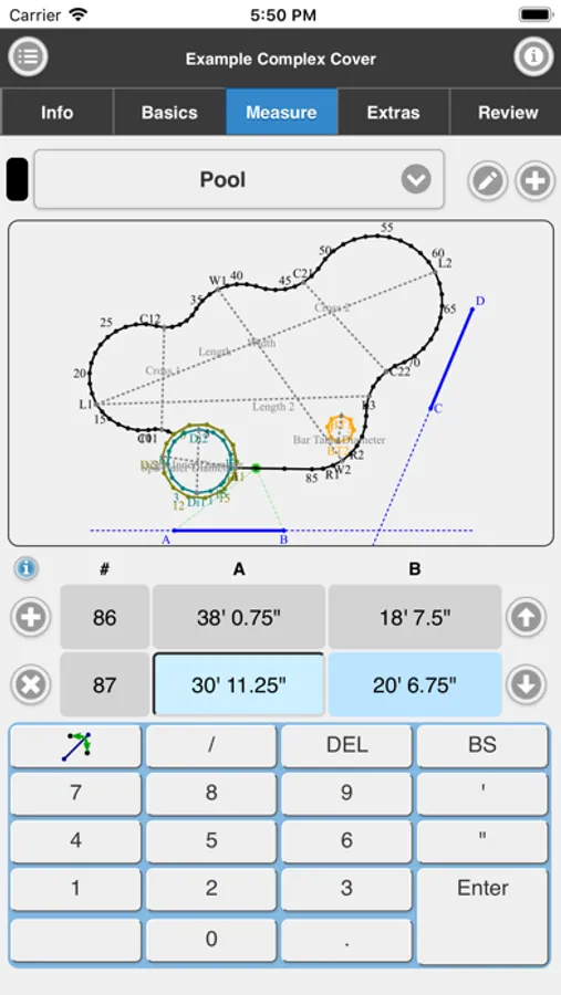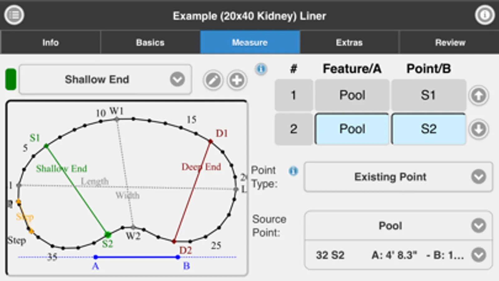 Note: Pool Measure Pro uses a pay-per-pool pricing structure. You may measure any number of pools, but must purchase an export for each project you wish to send. Pool exports can be purchased from within the app.