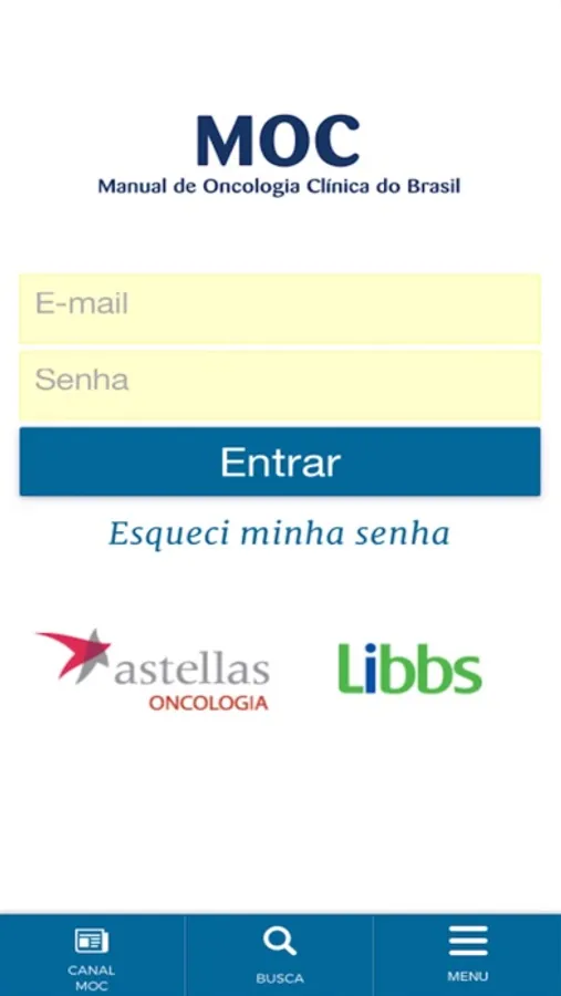 Para acessar o conteúdo do MOC é necessário efetuar um cadastro. O cadastro permitirá o acesso ao aplicativo e ao site do MOC (www.mobrasil.com). Caso você já possua um cadastro no site do MOC, basta utilizar o mesmo e-mail e senha para acessar o aplicativo.