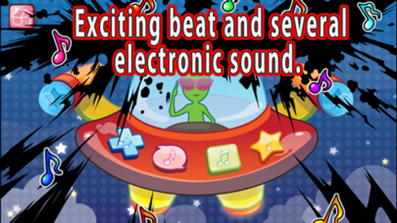 And here comes the UFO! Push the buttons on the UFO. Many different kinds of electronic sound and beat can make the alien dance! Touch the engines on the sides and make the UFO fly fast among the stars.
