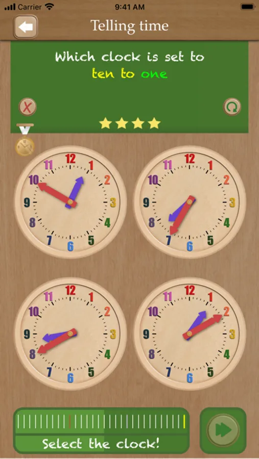 - Earn medals and shows that you are a real time telling champion!