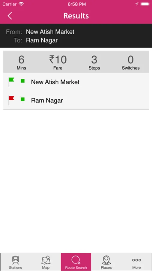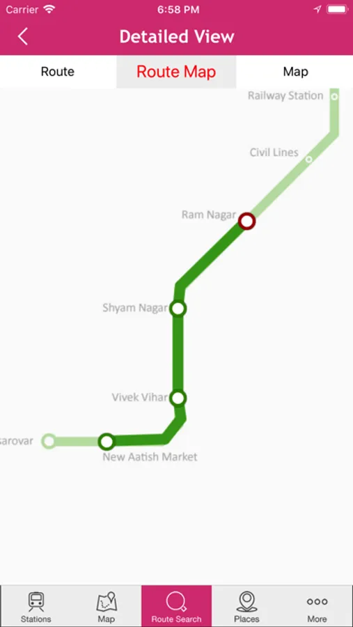 •Route Search - Provides information between two station, number of stops, and number of switches between the intermediate stations.