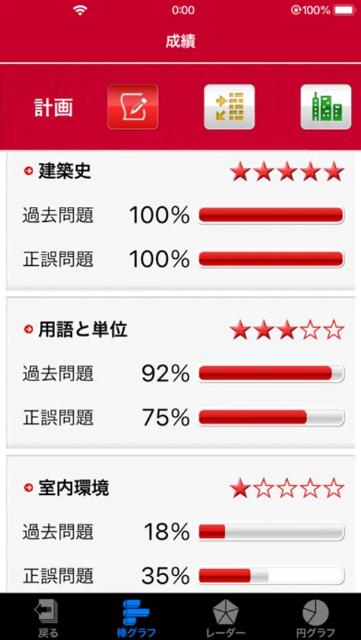 ・成績表 (棒グラフ・レーダー・円グラフ)