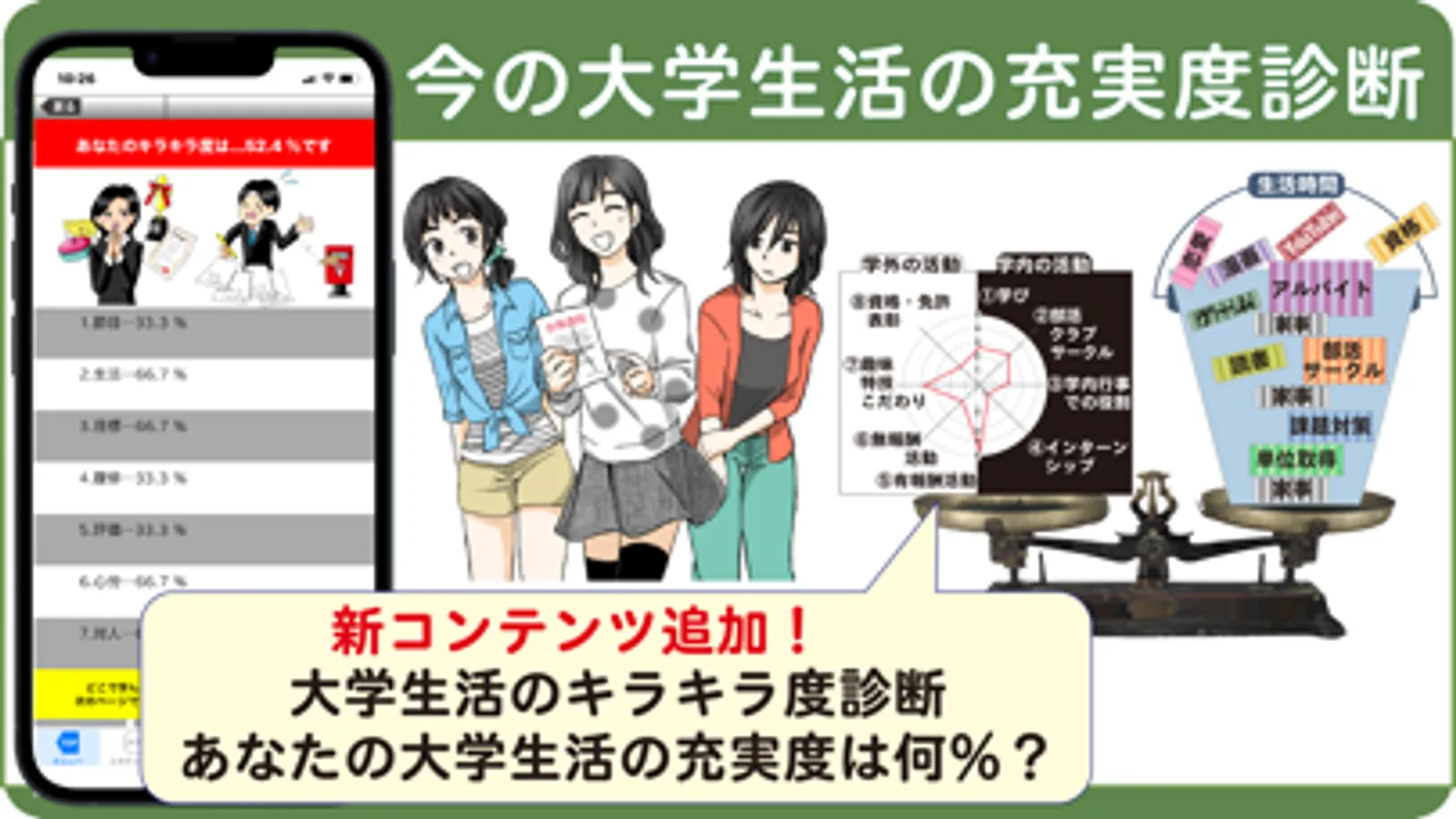 知らなかったと後悔して欲しくないから、7つの項目で大学生活のキラキラ度を判定します。