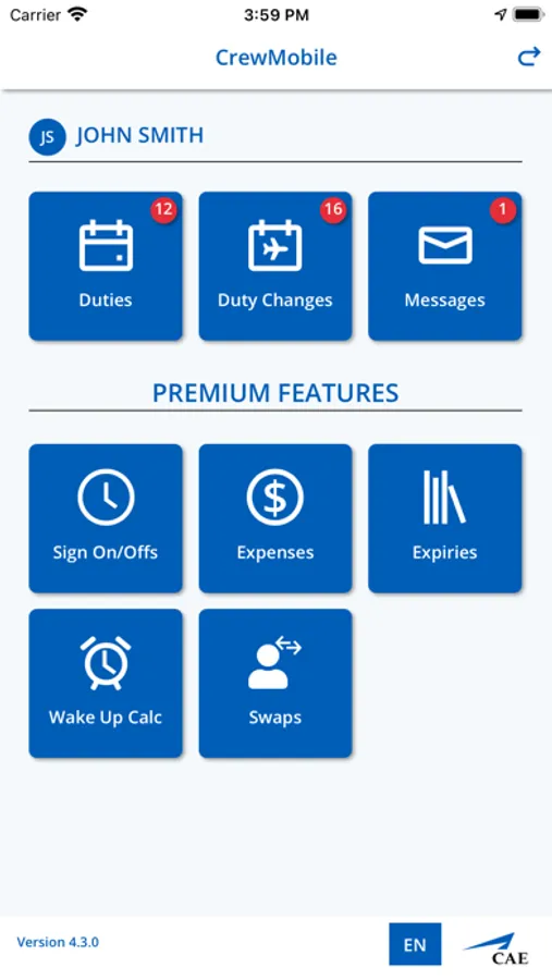CrewMobile is free to download and use for duties, duty changes and messages. The following premium features are available for purchase as a personal subscription.