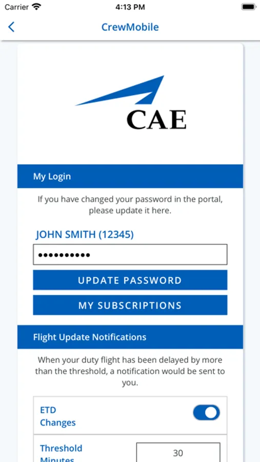 - receive notifications for duty changes and messages from airline