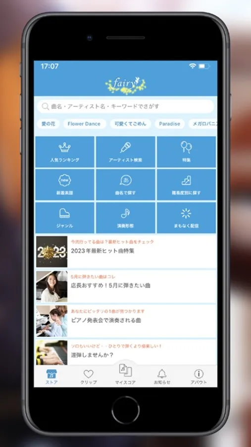Each musical score for piano, offered through Fairy is arranged and written exclusively for Fairy by a professional score arranger. Each score faithfully reflects its original score, and its layout takes deep consideration so that users can easily see scores on the screens of iPhone and iPad.