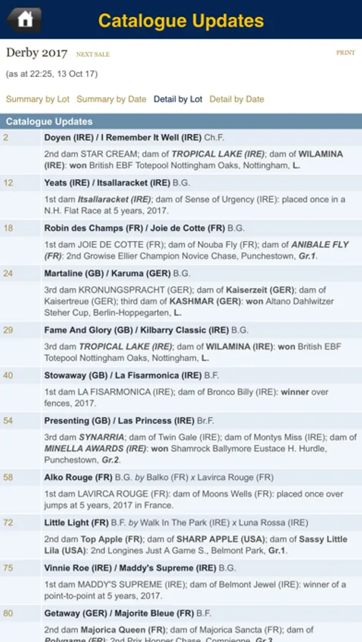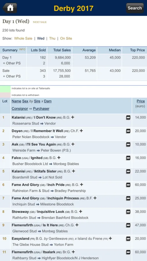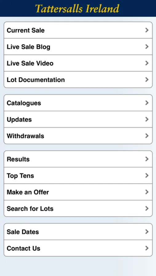 The App from Tattersalls Ireland, the Irish division of Tattersalls, Europe’s leading bloodstock auctioneers. It features sales results, catalogues, live video of sales, catalogue updates and withdrawals and the ability to search Tattersalls Ireland historic sales results.