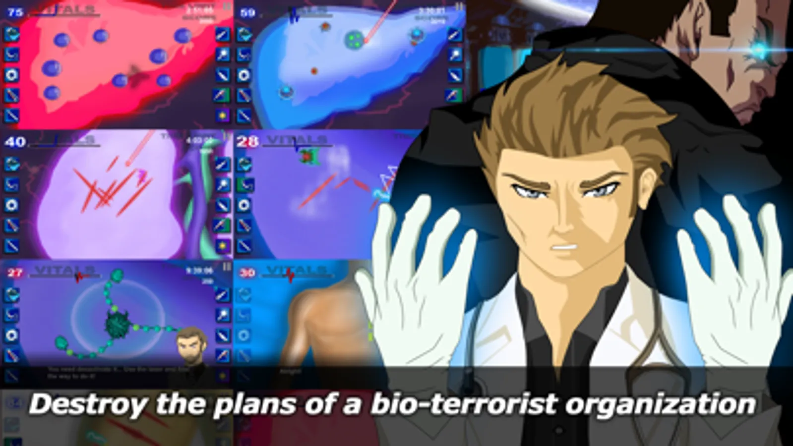 Discover the fascinating story of this young surgeon and destroy the evil plans of a bio-terrorist organization, you will fight against the most lethal strains.