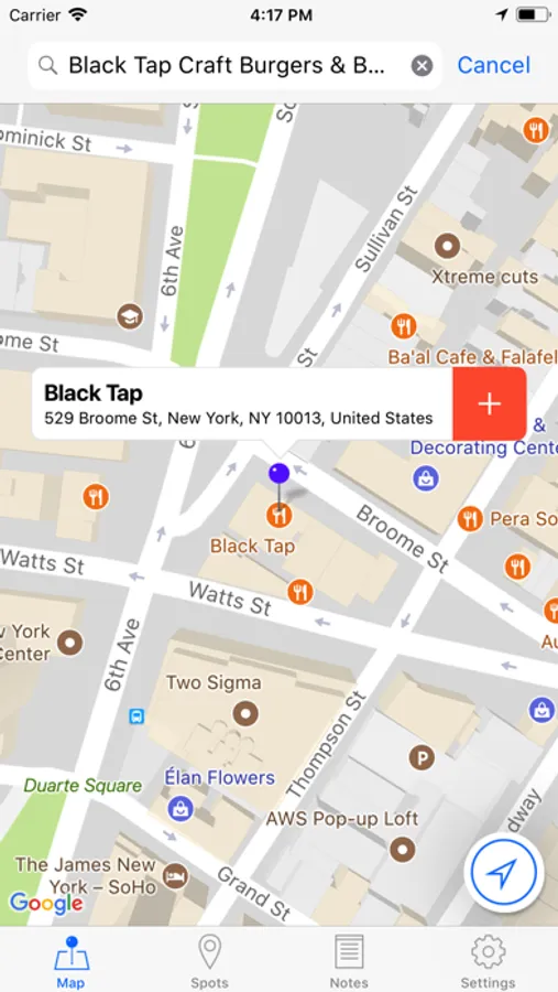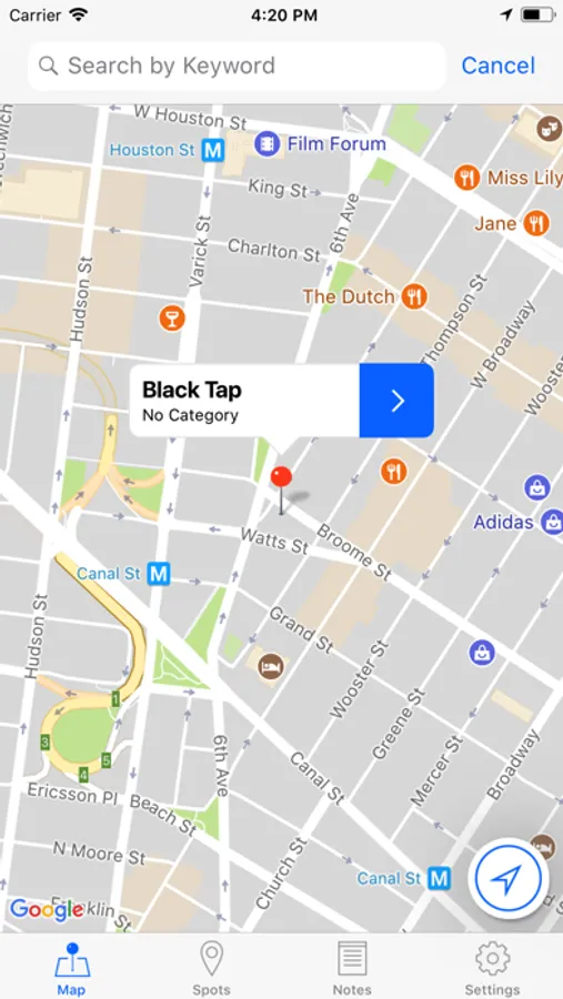 GeoMEMO also provides functionality to display a list of "Nearby Spots," providing you with a quick way to select a place and write a memo about it.