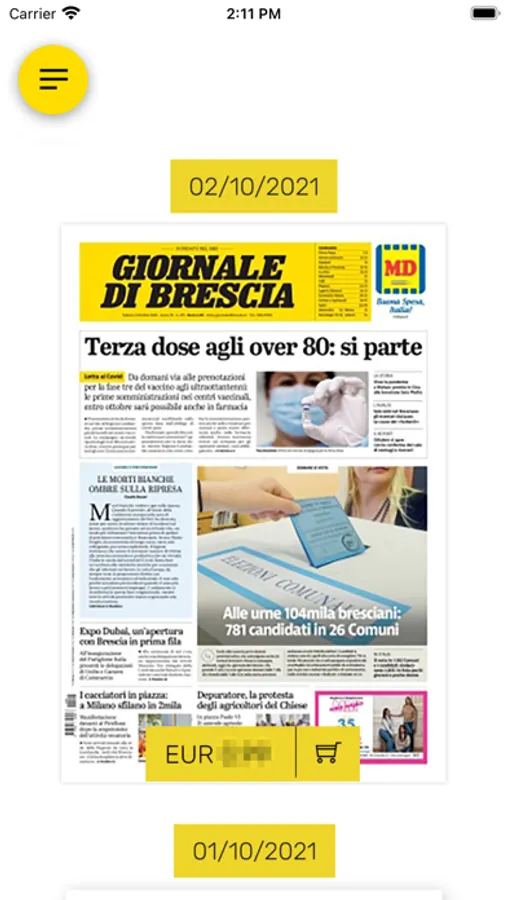 clicca sull'edizione del giorno o su un arretrato e consulta gratuitamente la prima pagina oppure acquista l'edizione completa o un abbonamento a scelta tra quelli presenti nello Shop