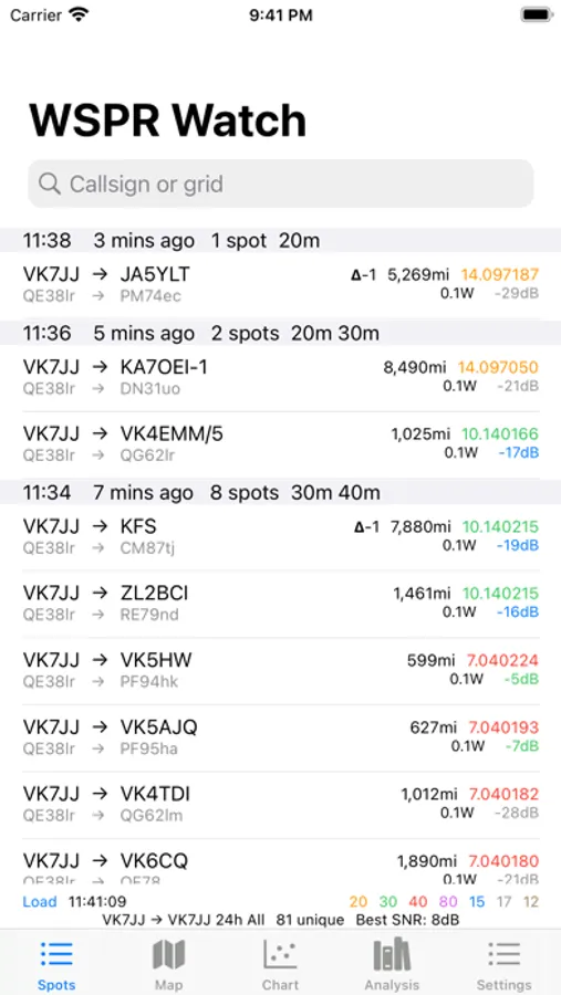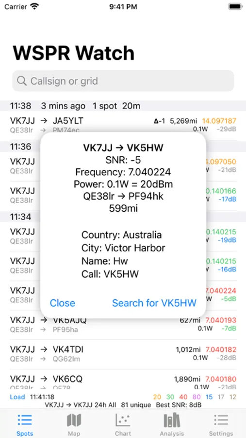 Utility for ham radio users of WSPRnet. Quickly shows who can hear you and details of each spot.