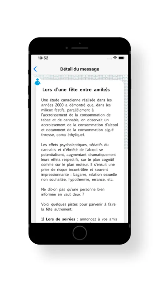 Après avoir défini votre profil, vous recevrez régulièrement des messages de suivi, comme si un coach personnel vous accompagnait tout au long de votre arrêt!