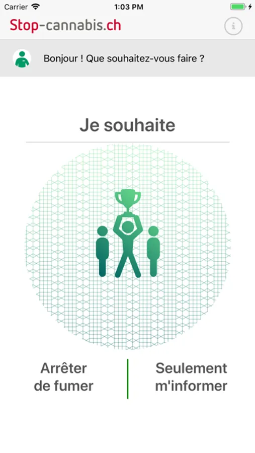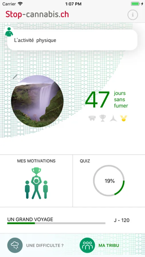Développée par des experts de l'arrêt de l'Université de Genève, basée sur l'application Stop-tabac, cette nouvelle application contient des messages spécialement adaptés à l'arrêt du cannabis.
