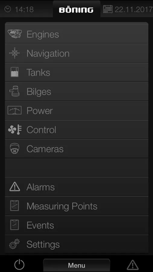 The graphical user interface closely matches the user interface of the Böning ship alarm displays already installed on board. The user interface can be designed according to customer requirements to ensure the highest degree of operational safety.