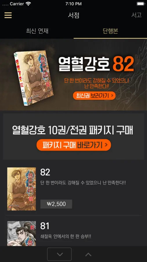 출판사와 작가가 함께 만든 ‘열혈강호 공식앱’으로 최신 단행본도 가장 빨리 볼 수 있습니다.