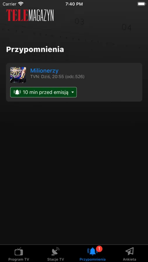 Program TV Telemagazyn to zawsze aktualny program telewizyjny, informacje o ulubionych serialach, filmach i programach telewizyjnych w Twoim telefonie. Łatwo i szybko poznasz najnowszy program TV – zaplanuj co będziesz oglądać wieczorem i ustaw przypomnienie. Nasza aplikacja przypomni Ci w odpowiednim momencie, że już czas zasiąść przed telewizorem.
