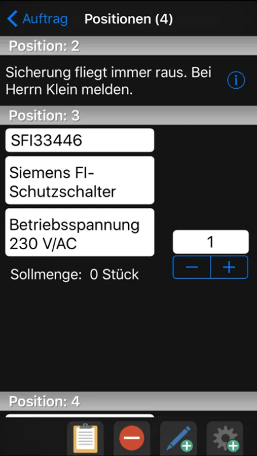 - Auftrag beim Kunden bearbeiten, Positionen anlegen, Material auswerten, etc.