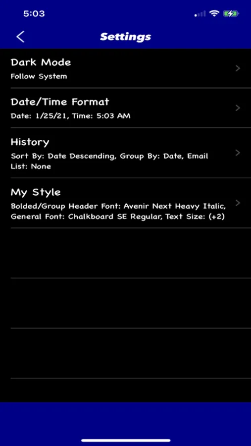 Filter the history and email a report for doctor’s visits or your own personal records in a CSV file format which can be view using spreadsheet software or in html format that can be view and printed from any browser.