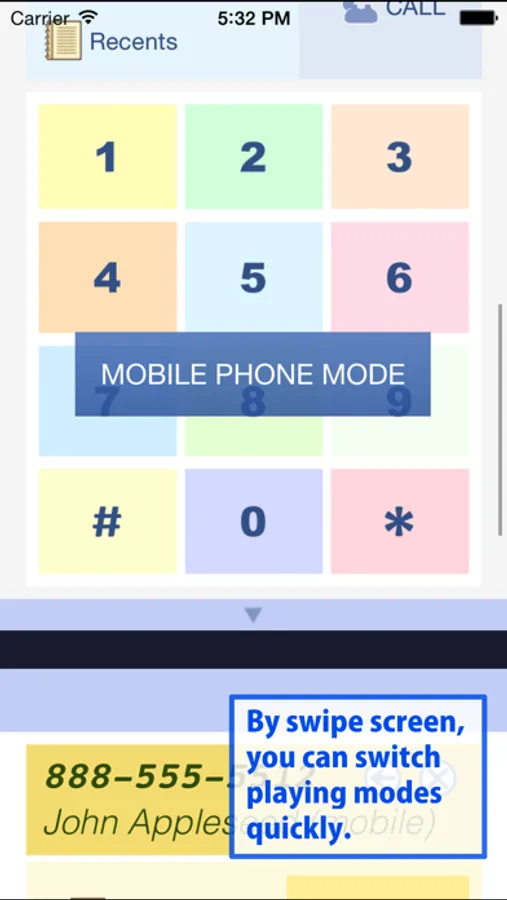 Because this mode's play button is big, You can press the button easily while put iPhone's speaker to the handset of telephone.