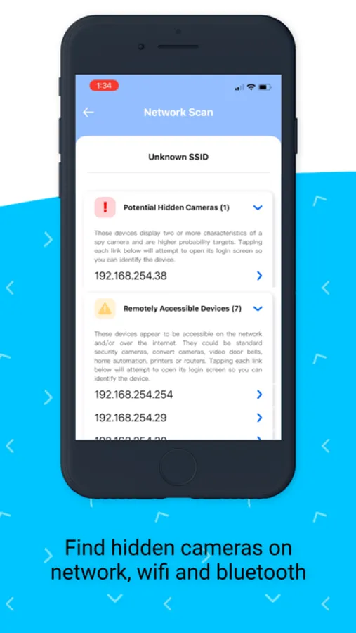Find hidden cameras, covert devices, GPS trackers & bugs on WiFi, Network & Bluetooth with our proprietary all-in-one network scanner. Home, office, Airbnb, hotels, any wireless network you connect to.