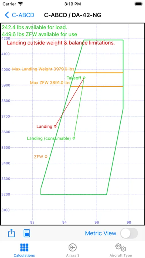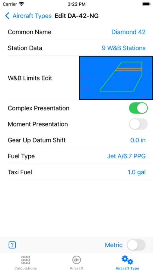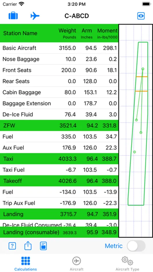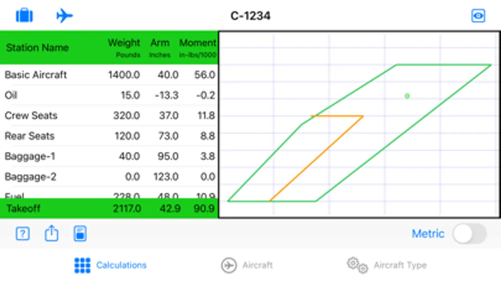 AeroW&B is an extremely versatile weight and balance calculator designed for general aviation use. It features both a tabular output, and a graphic weight and balance representation. The app allows you to create as many aircraft types as you need.