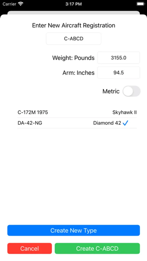 There are no ‘in app’ purchases to 'hopefully' get the aircraft type you are flying. You can create the aircraft types yourself, or if having problems email me your aircraft info and I can do it for you. Once you have created an aircraft type, you can create as many aircraft of that type as you want. It is perfect for both the student at a flight school that may have a number of 172′s, 150′s etc, or for the renter.