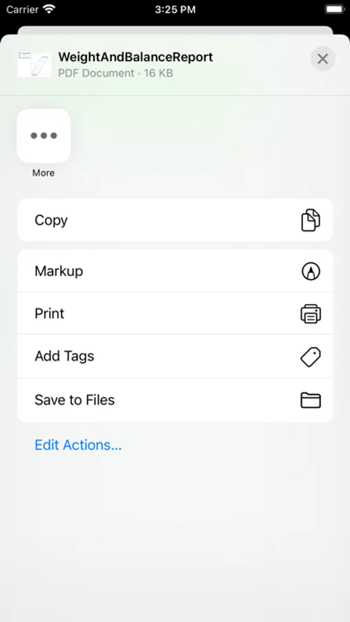 You can email, print or AirDrop your weight and balance calculations. You can do the same with your aircraft data for other AeroW&B users for their use.
