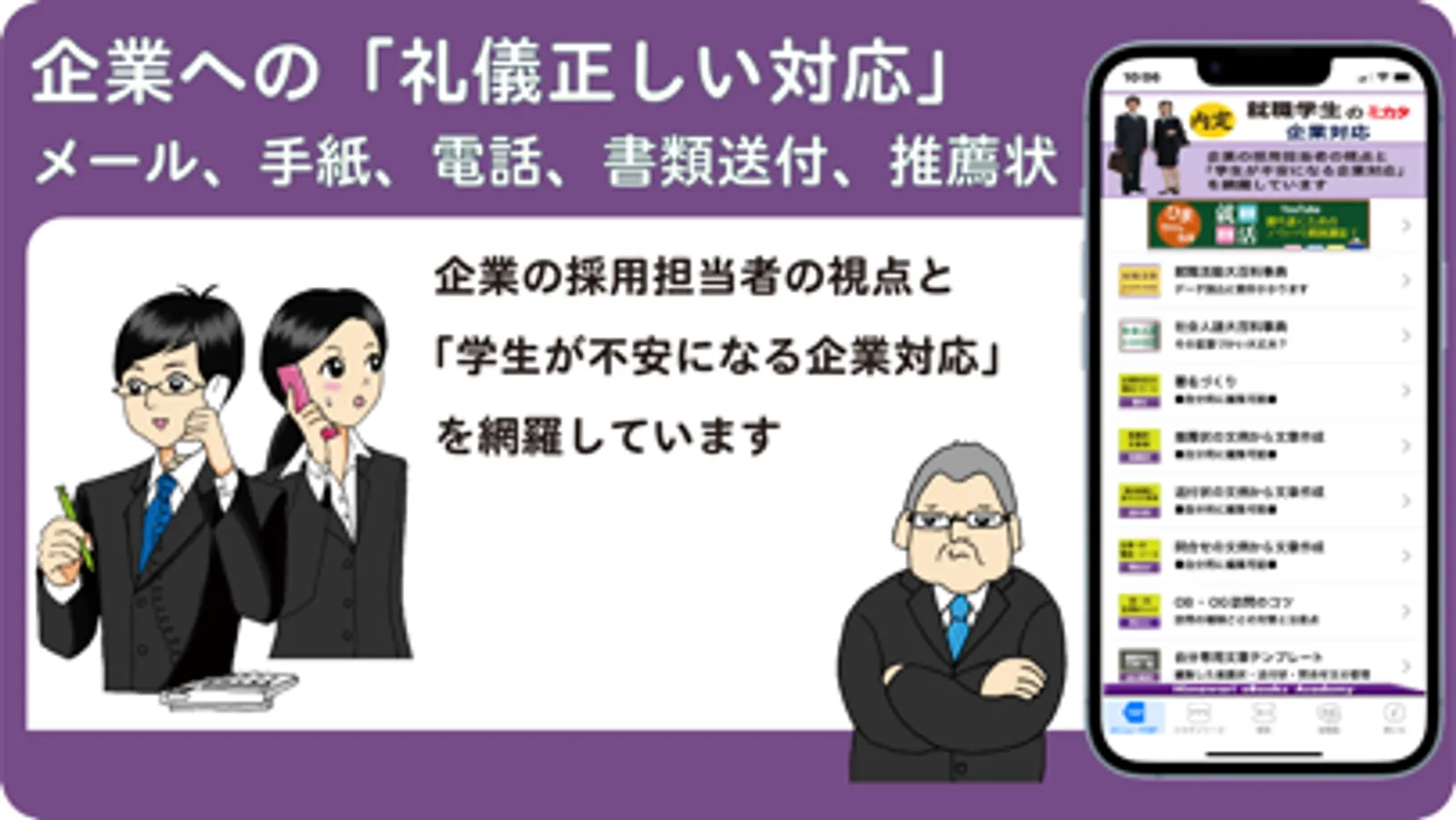 企業に提出したり、問合せたりする時の、企業対応ノウハウブック+文章例テンプレート集アプリ です。