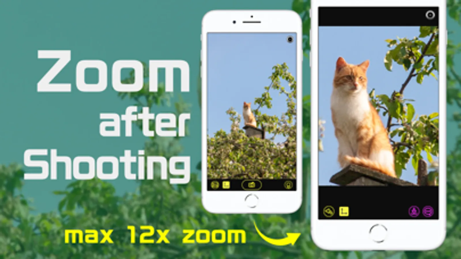 When saving, image quality degradation can be reduced by the special algorithm of Shoot'n Zoom. In addition, you can also load a photo from your Photo Library to trim.
