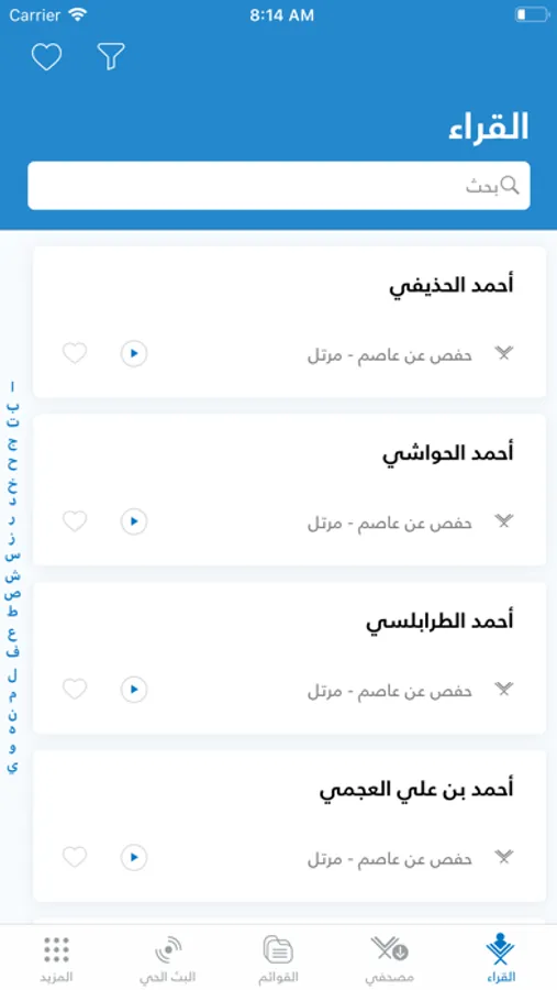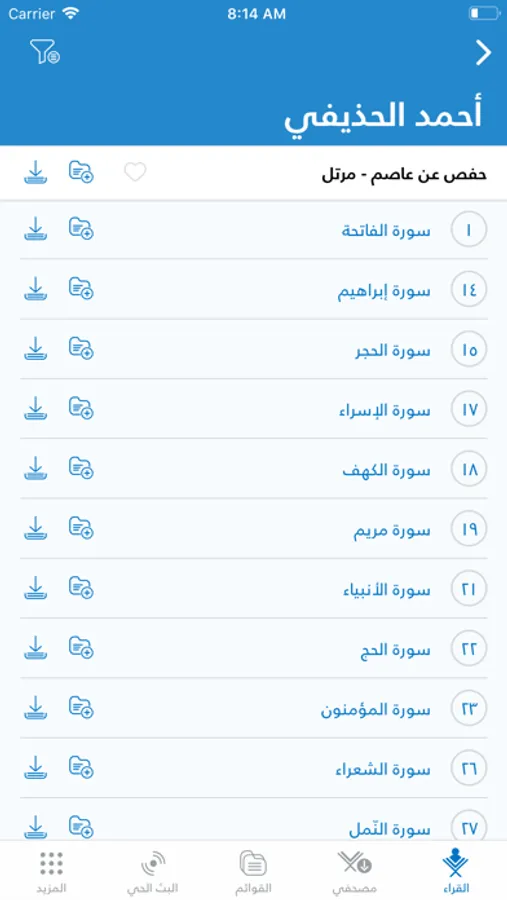 Listen to Surah or several selected verses in your favorite voice among the hundreds of famous reciters of the Holy Quran, in many narrations “Riwayat”: Hafs, Rash, Qaloun, Al Duri.