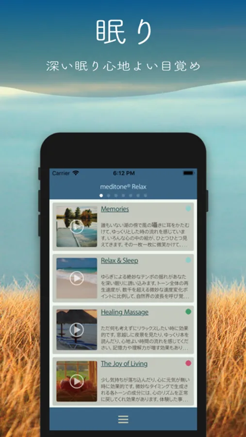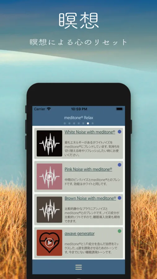 If you suffer from the symptoms such as "Insomnia" or "Decrease of willpower" by stress or fatigue accumulated before you know. On an occasion like that, try this meditone. You will surely get relaxed and feel better step by step