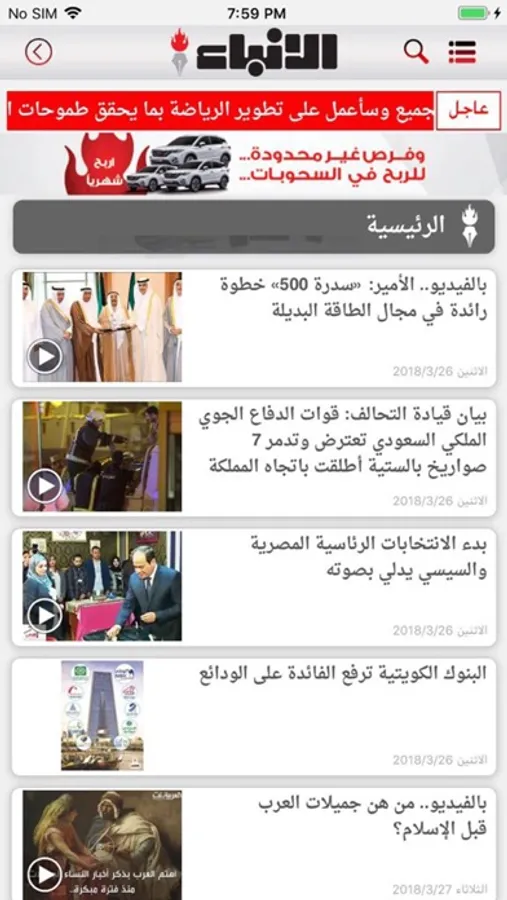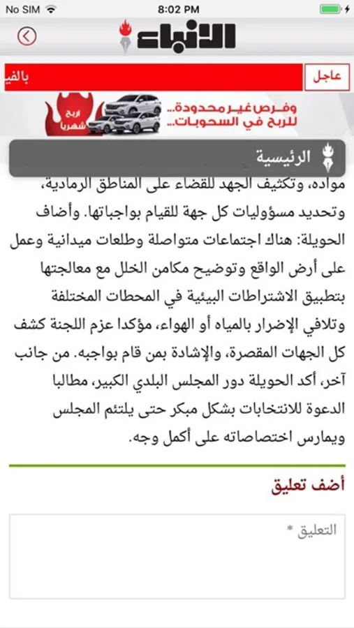 - معرض الصور مع امكانية مشاركتها عبر وسائل التواصل الاجتماعي بالإضافة الى قرائة الخبر