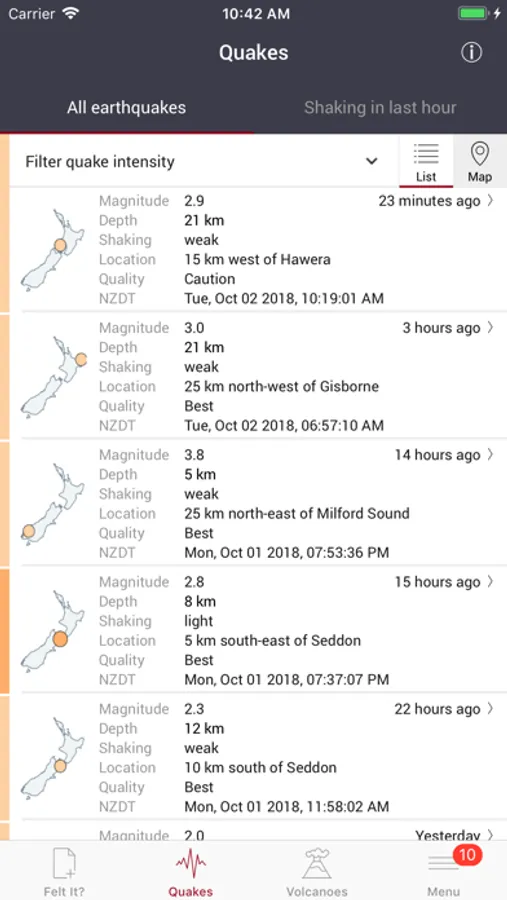 The official GeoNet Quake app – Receive custom notifications for earthquakes in New Zealand, and bulletins on volcanic activity.
