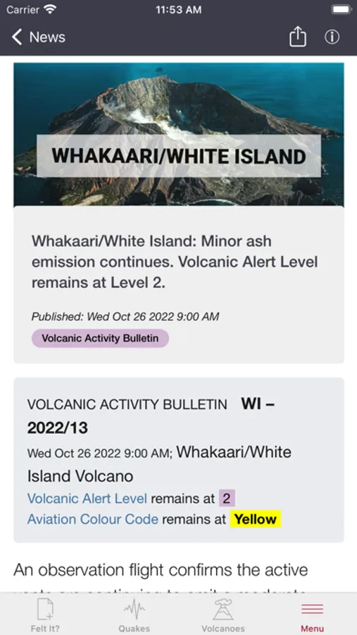 Get notified about changing volcanic activity with Volcanic Alert Bulletins.
