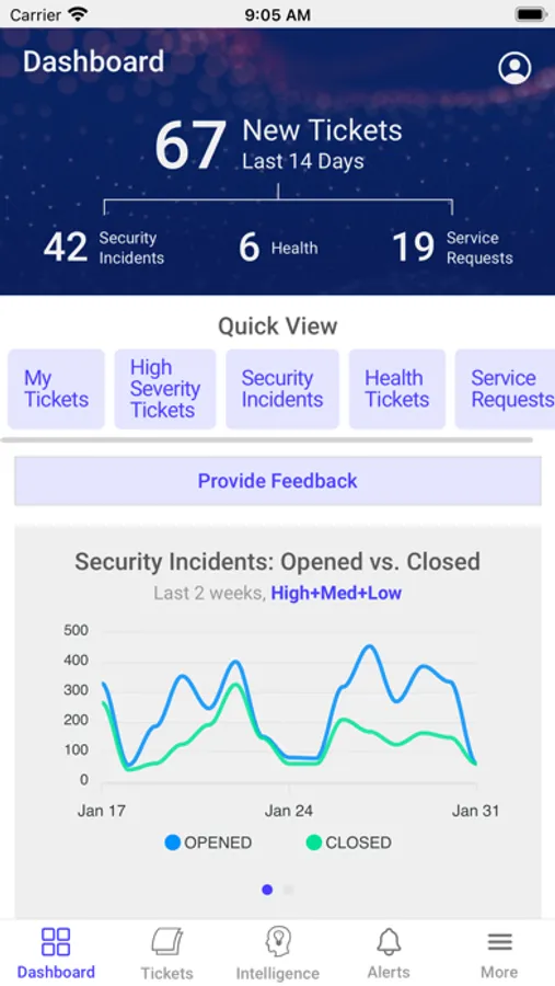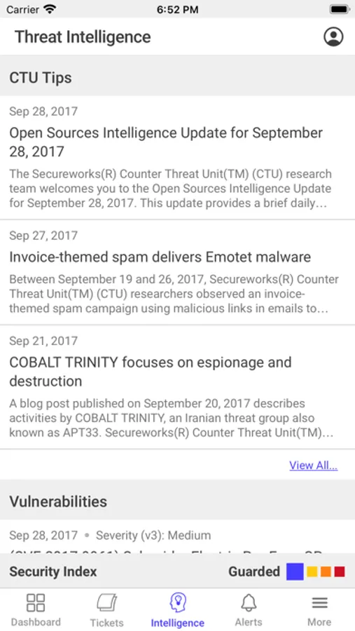 The Secureworks Mobile App is creating a relaxing experience for clients who are on the go, whether you are a small business or a large enterprise. Search, view, create, and modify your tickets, so you can quickly view ticket status, decide on next steps, and share the most relevant information with your teams – all without calling the Security Operations Center (SOC). You can also view the latest Threat Intelligence reports such as the Secureworks Counter Threat Unit™ (CTU™) Tips and Vulnerability information. The Secureworks Mobile App is also tied to the Secureworks Client Portal so you can find and view your tickets whether you are on the go or sitting at your desk.