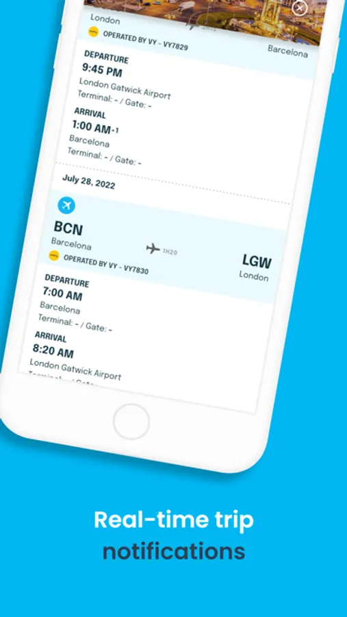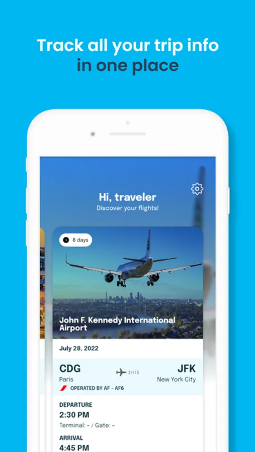 • Real-time trip alerts for flight delay, gate changes, luggage carrousel and more