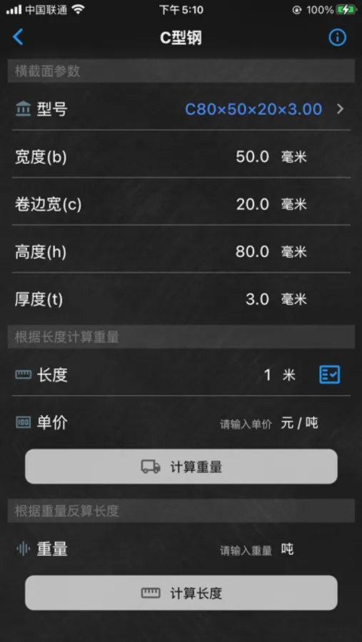 A professional tool for calculating weight of steel, according to the steel models or parameters to automatically calculate the weight, price. Each of the calculated results will be saved in history in order to facilitate inquiries.