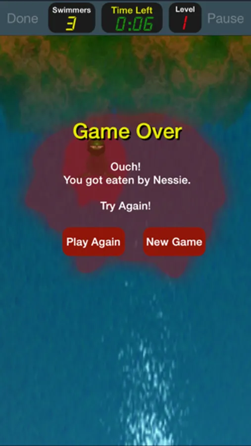 Object: Navigate your raft safely to the shore without being eaten by the Loch Ness Monsters, or hitting too many swimmers!